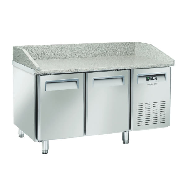 Saltas Two Solid Door Marble Top Pizza Fridge with Splashback. Finished in Stainless Steel.