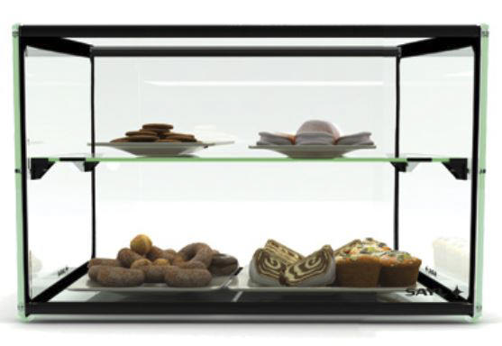 Sayl 550mm 2 Tier Ambient Food Display. Hygienic and Elegant Display for Muffins, Biscuits and Non- Refrigerated Items