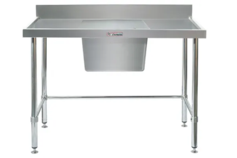 Simply Stainless 600 Series Modular 1200mm Sink Bench with Splashback and Leg Brace. Center Single Bowl Sink.