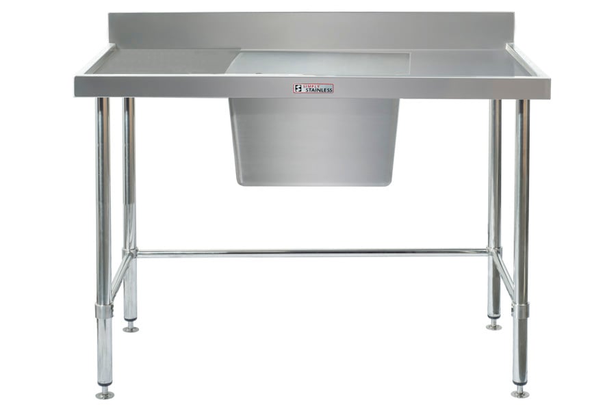 Simply Stainless 600 Series Modular 1800mm Sink Bench with Splashback and Leg Brace. Center Single Bowl Sink.