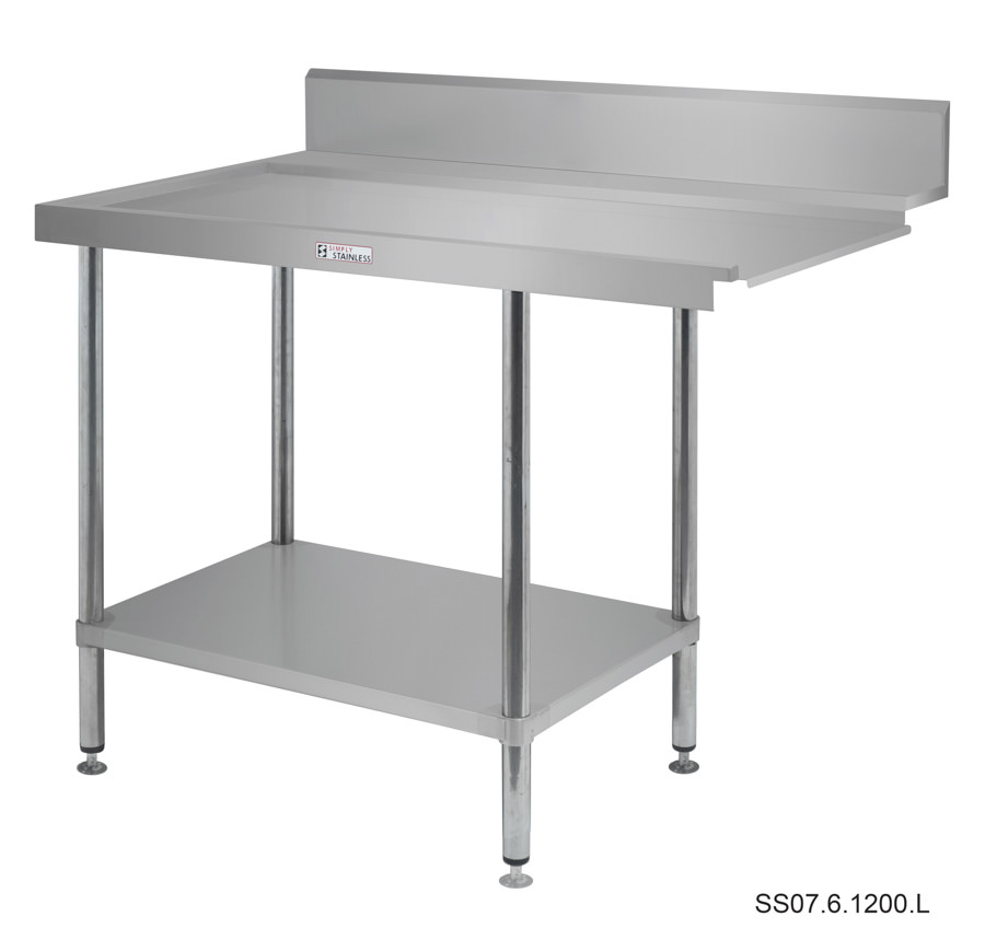 Simply Stainless 600 Series Modular 1650mm Left Hand Dishwasher Outlet Bench with Splashback and Undershelf.