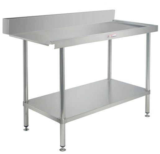 Simply Stainless 700 Series 1500mm Right Hand Dishwasher Outlet Bench with Splashback and Undershelf.