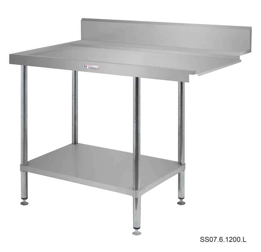 Simply Stainless 700 Series Modular 1650mm Left Hand Dishwasher Outlet Bench with Splashback and Undershelf.