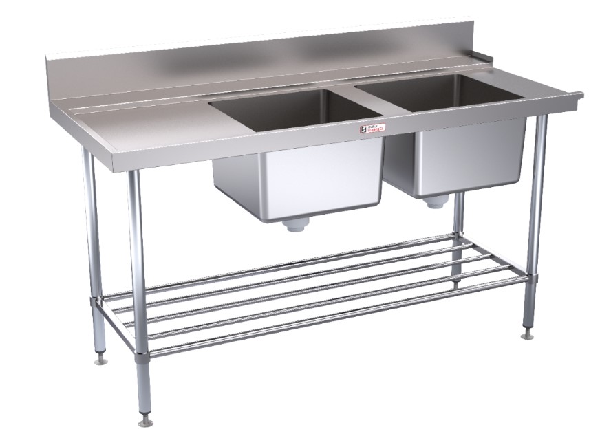 Simply Stainless 700 Series Modular 1650mm Left Hand Double Bowl Dishwasher Inlet Bench with Splashback and Pot Rail