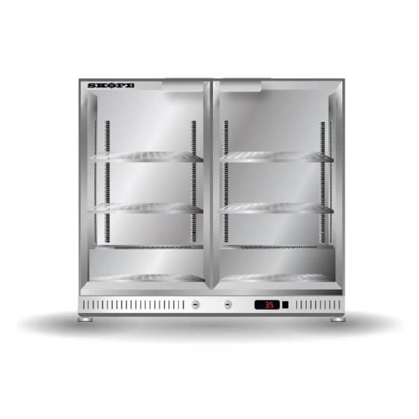 Skope Ascend Series Two Glass Swing Door, 130Lt Undercounter Bar Cooler Fridge. Finished in Stainless Steel.