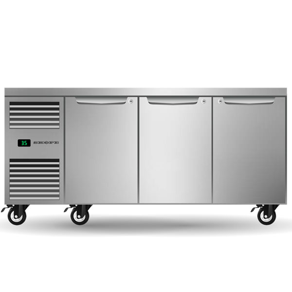 Skope ProSpec Series Three Bay Solid Door 447Lt Self-Contained Undercounter Fridge with Left Hand Services. Finished in Stainless Steel. (10A)