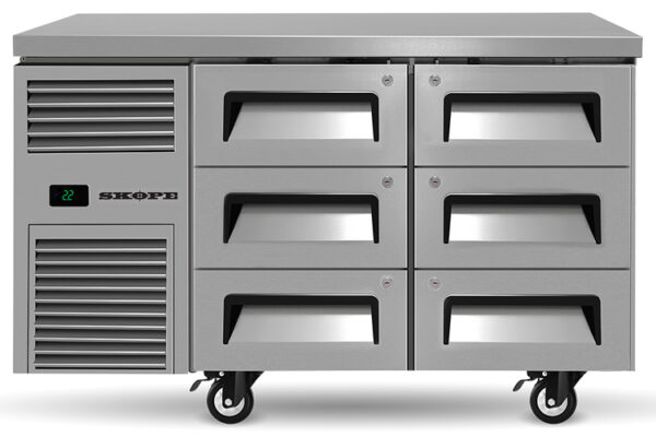 Skope Reflex Series 6 Drawer, 248Lt Undercounter Chiller with Side Mounted Motor. Finished in Stainless Steel. (10A)