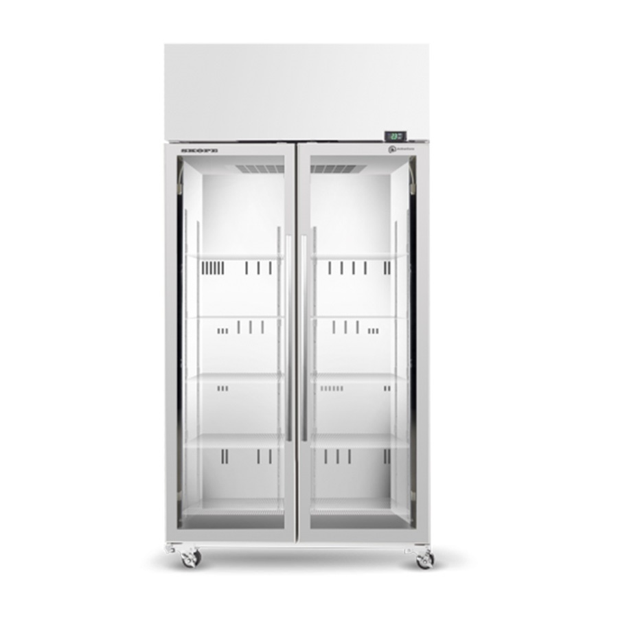 Skope TME Active Core Series Two Glass Door, 897Lt Vertical Display Fridge with Top Mounted Motor. Finished in White. (10A)