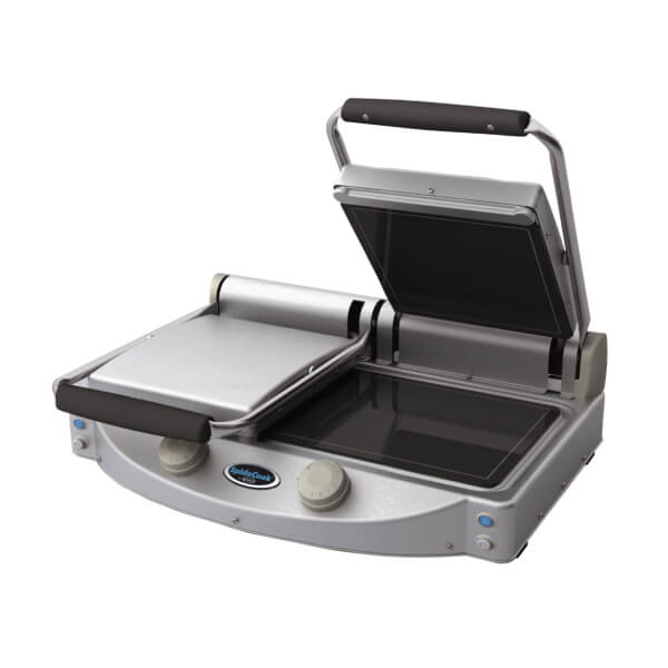 Spidocook Spidoglass Series Electric Countertop Double Glass Ceramic Contact Grill with Black Smooth Surface and Manual Control. (10A)