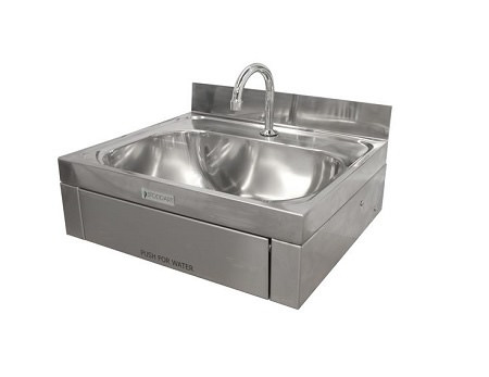Stoddart Plumbing Knee Operated Wash Basin with Splashback Includes Thermostatic Mixing Valve suitable for Healthcare Applications