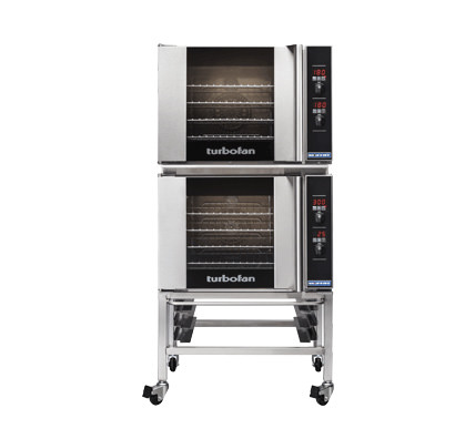 Turbofan 30D Series Double Stacked 4 x 1/1 GN Pan Capacity Electric Convection Ovens with Digital Controls on Mobile Stand. (2x 15A) Assembly Required For Double Stacking