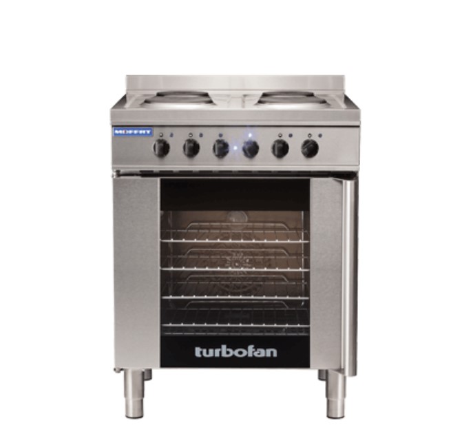 Turbofan 30M Series Full Size 4 1/1 GN Pan Electric Convection Oven with 4 Electric Element Cooktop.
