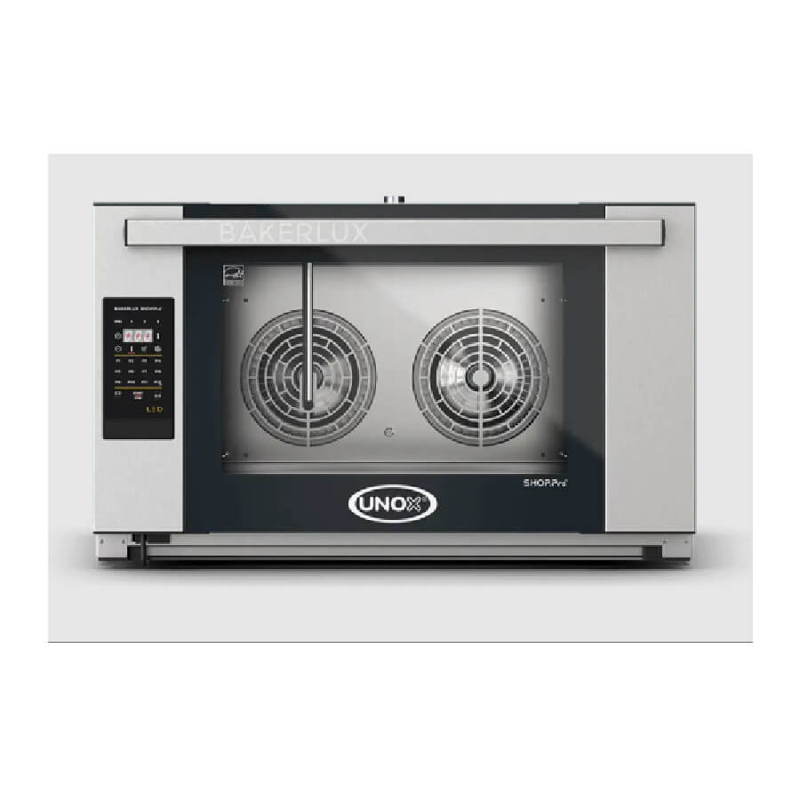 Unox Bakerlux Shop Pro Touch Series 4 Tray LED Electric Convection Oven with Touch Control Panel and Manual Opening.