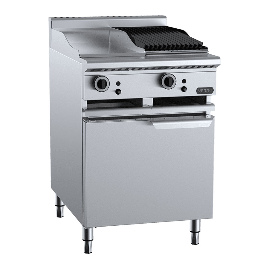 Verro Premium Fusion Series Combination 300mm Griddle and 300mm Char Broiler (Radiant) on Cabinet Base. (NAT Gas)
