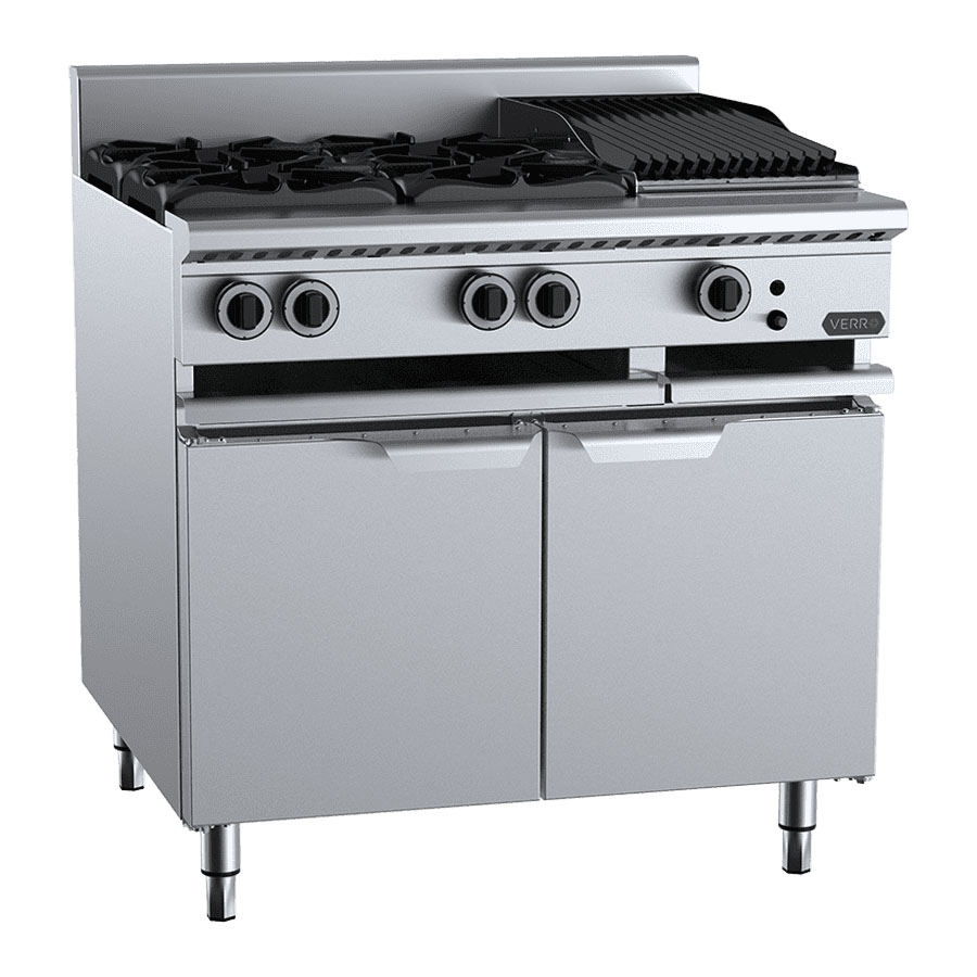 Verro Premium Fusion Series Combination 4 Open Burners and 300mm Char Broiler (Radiant) on Cabinets Base. (NAT Gas)
