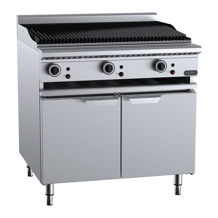Verro Premium Fusion Series 900mm Radiant Hood Style Gas Char Broiler on Cabinets Base. (LPG Gas)