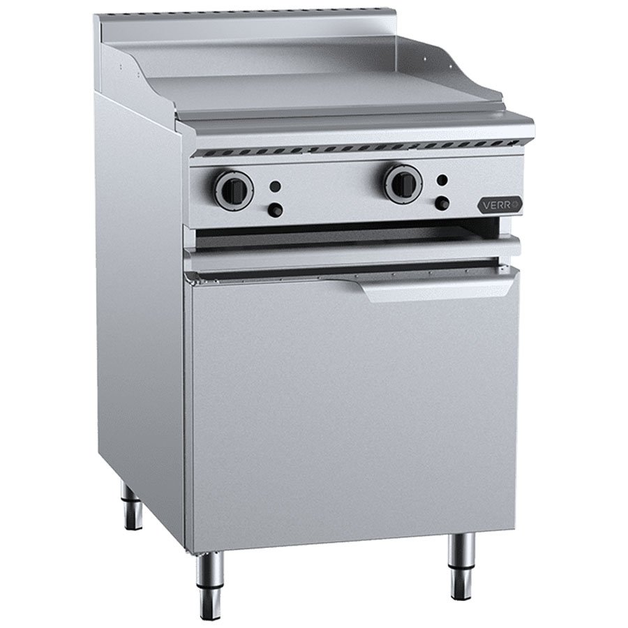 Verro Premium Series 600mm Gas Griddle on Enclosed Cabinet Base with Top Welded 16mm Thick Hotplate. (NAT Gas)