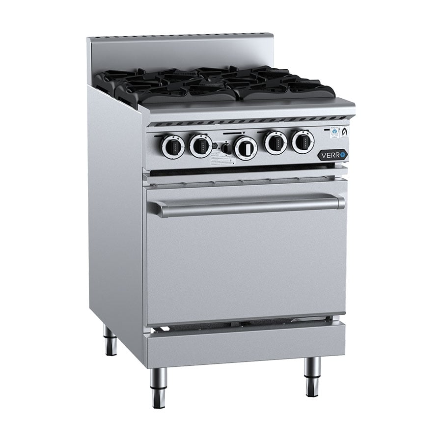 Verro Premium Fusion Series 600mm Gas 4 Burner Range with Full Size Static Oven Under. (NAT Gas)