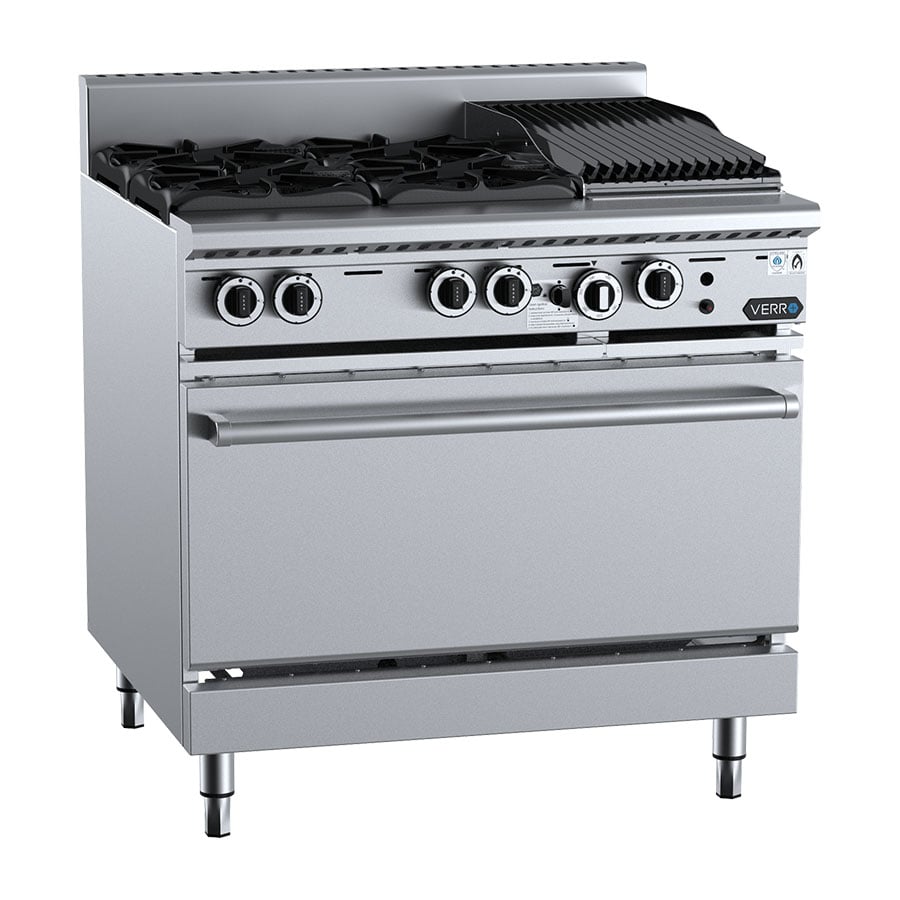 Verro Premium Fusion Series Oven Range with Combination Four Open Burner and 300mm Char Broiler. (LPG Gas)