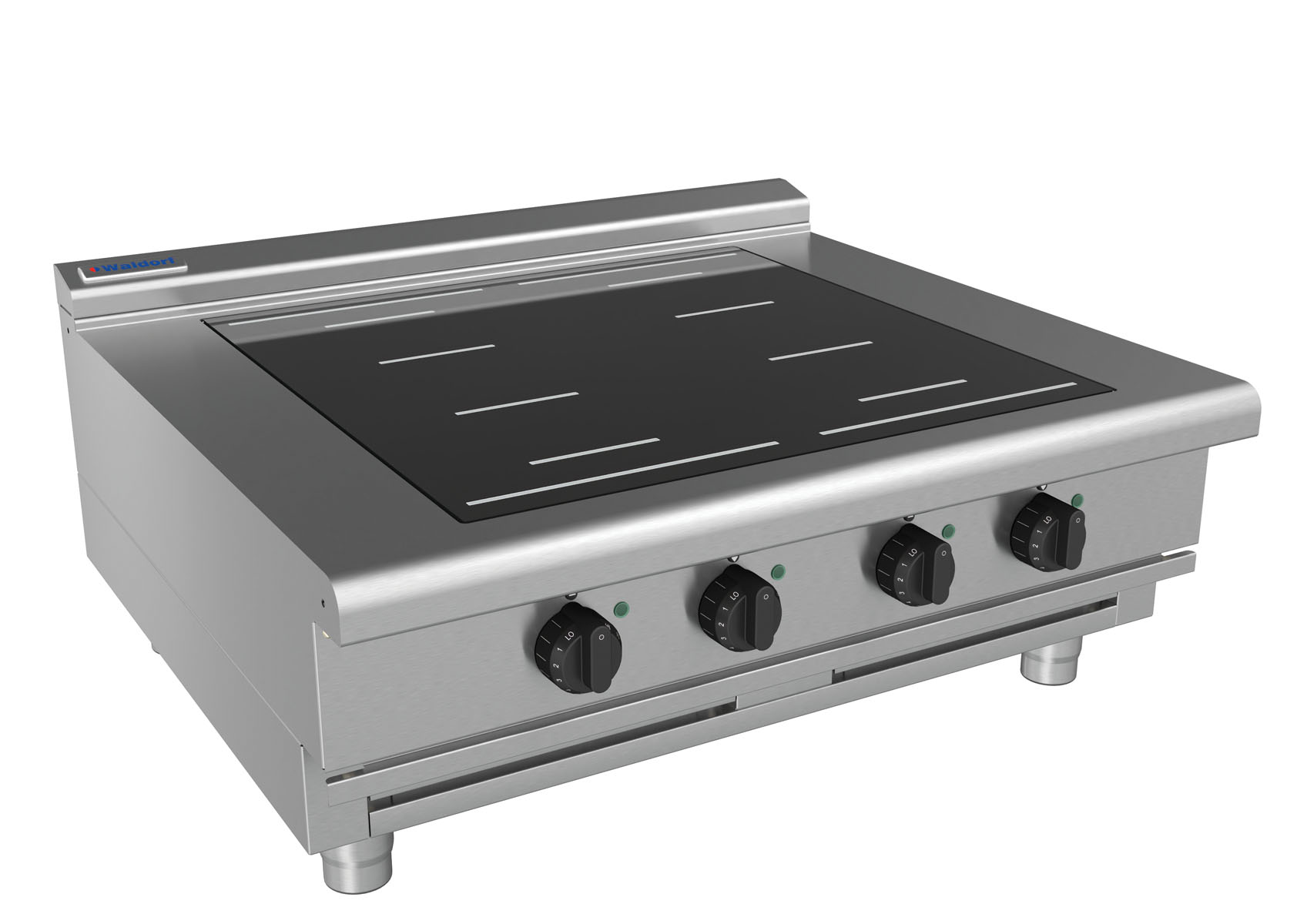 Waldorf 8400 Series 900mm 4 x 5kW Full Square Zone Electric Induction Benchtop Cooktop with Low Height Splashback. (3P)