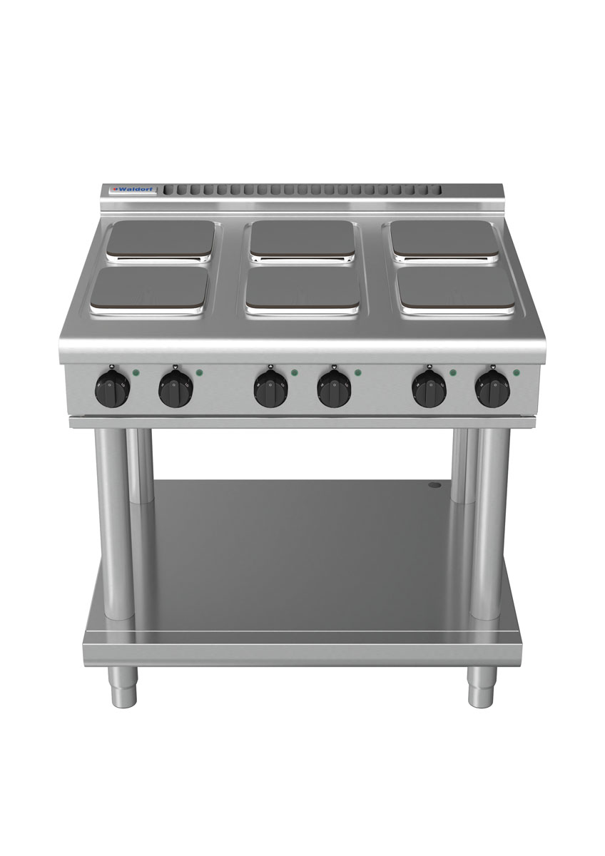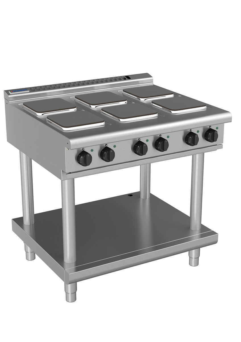 Waldorf 8600 Series 900mm 6 x 2.6kW Electric Cooktop on Leg Stand with Sealed Hobs and Low Height Splashback. (3P)
