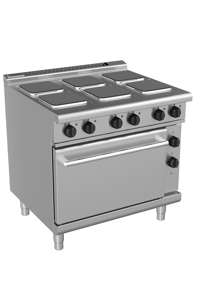 Waldorf 8610 Series 900mm 6 x 2.6kW Electric Cooktop on 2/1 GN Static Oven with Sealed Hobs and Low Height Splashback. (3P)