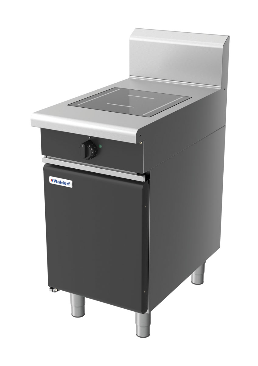 Waldorf BOLD 8100 Series 450mm 1 x 5kW Full Square Zone Electric Induction Cooktop on Cabinet Base with Door. Finished in Black. (3P)