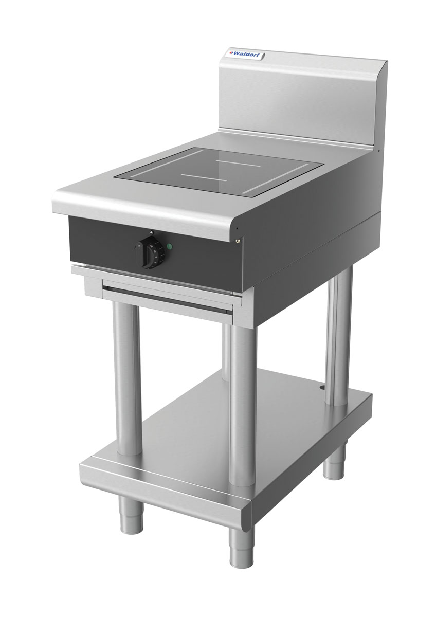 Waldorf BOLD 8100 Series 450mm 1 x 5kW Full Square Zone Electric Induction Cooktop on Leg Stand. Finished in Black. (3P)