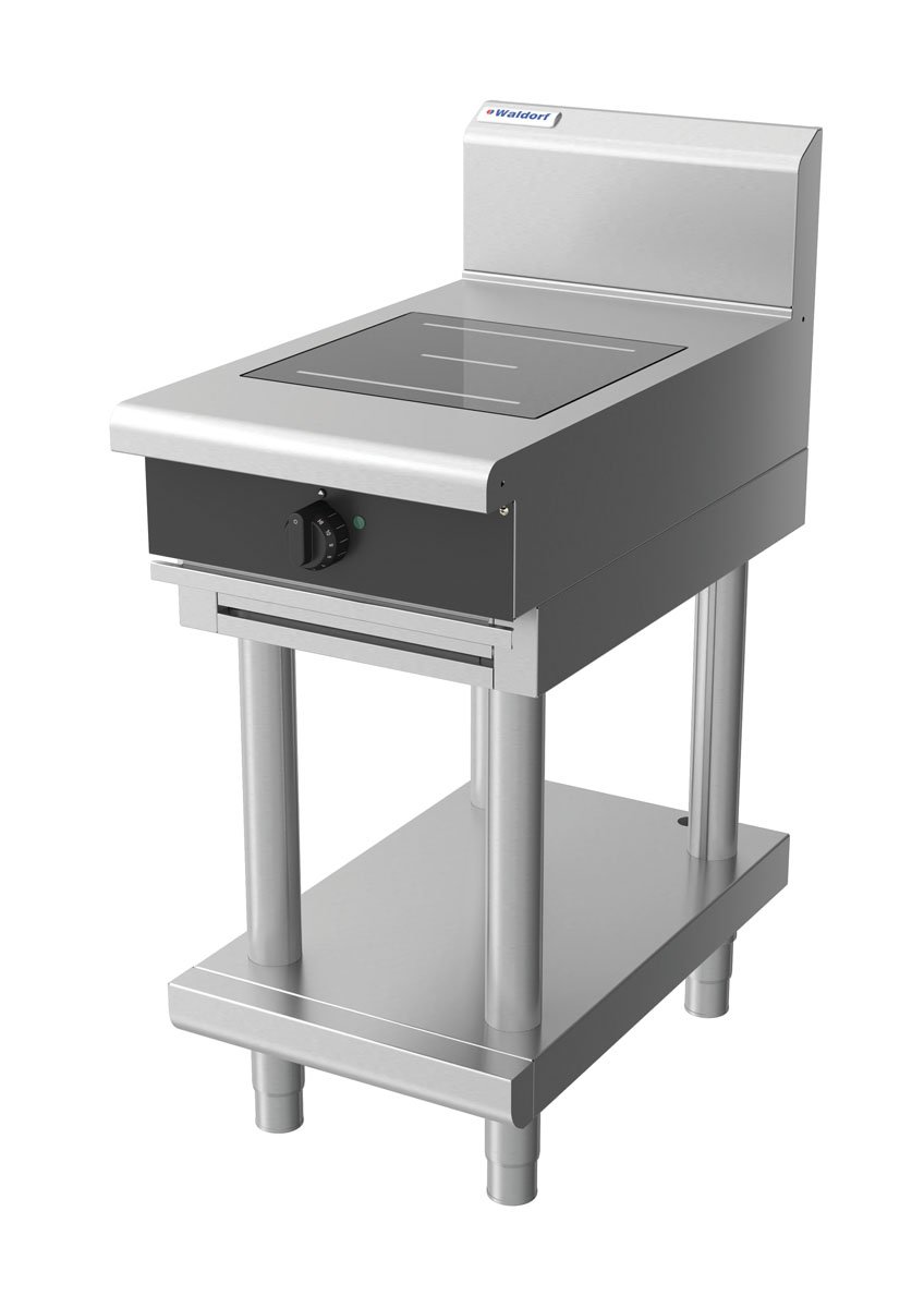 Waldorf BOLD 8100 Series 450mm 1 x 5kW Round Zone Electric Induction Cooktop on Leg Stand. Finished in Black. (3P)