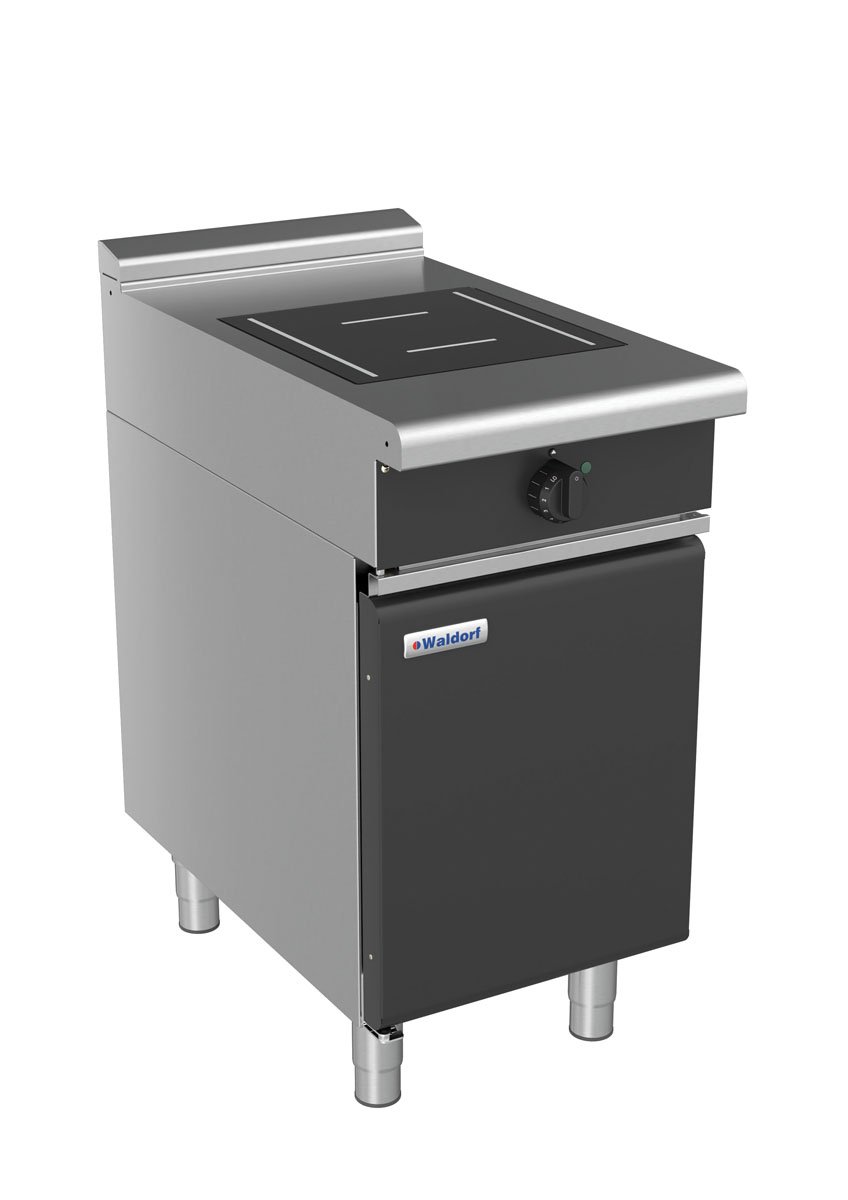 Waldorf BOLD 8100 Series 450mm 1 x 5kW Full Square Zone Electric Induction Cooktop on Cabinet Base with Door and Low Height Splashback. Finished in Black. (3P)