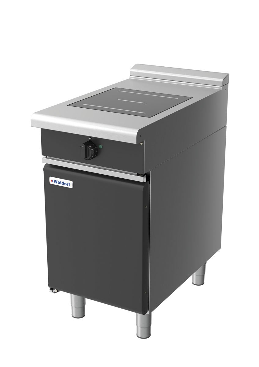 Waldorf BOLD 8100 Series 450mm 1 x 5kW Round Zone Electric Induction Cooktop on Cabinet Base with Doors and Low Height Splashback. Finished in Black. (3P)