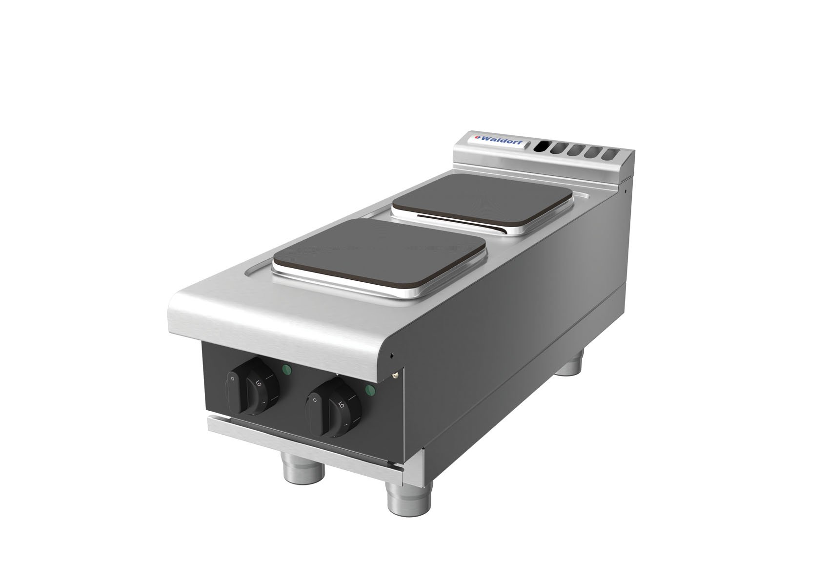 Waldorf BOLD 8200 Series 300mm 2 x 2.6kW Electric Benchtop Cooktop with Sealed Hobs and Low Height Splashback. Finished in Black. (22A)