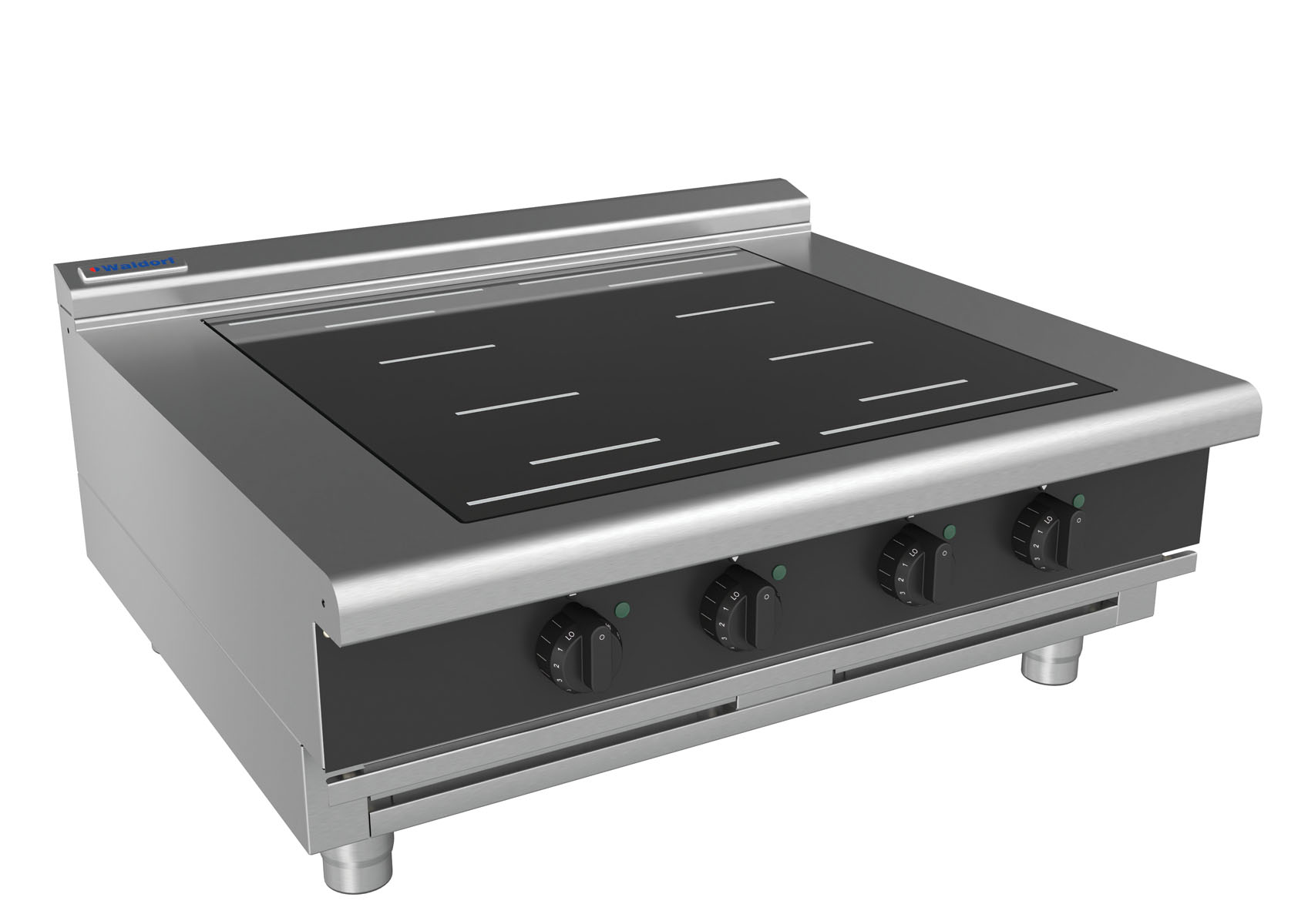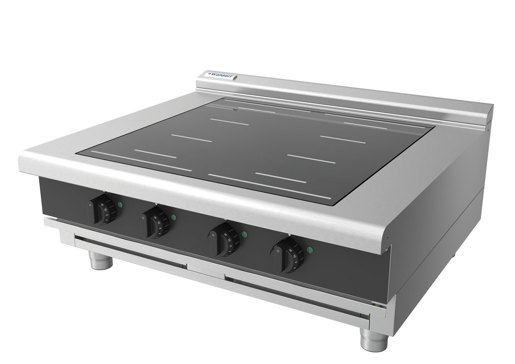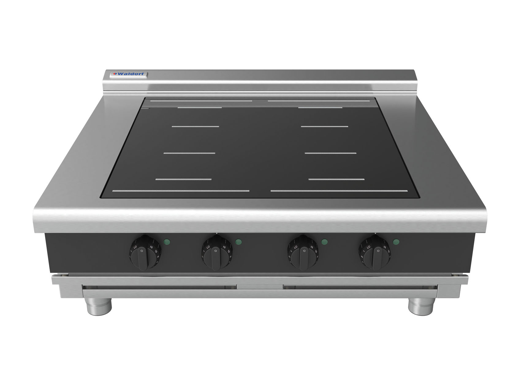Home Shop Commercial Cooking Equipment Induction Cooking Benchtop Waldorf BOLD 8400 Series INLB8400F-B-BLK 900mm Four Full Area Induction Benchtop Cooktop with Low Height Splashback in Black