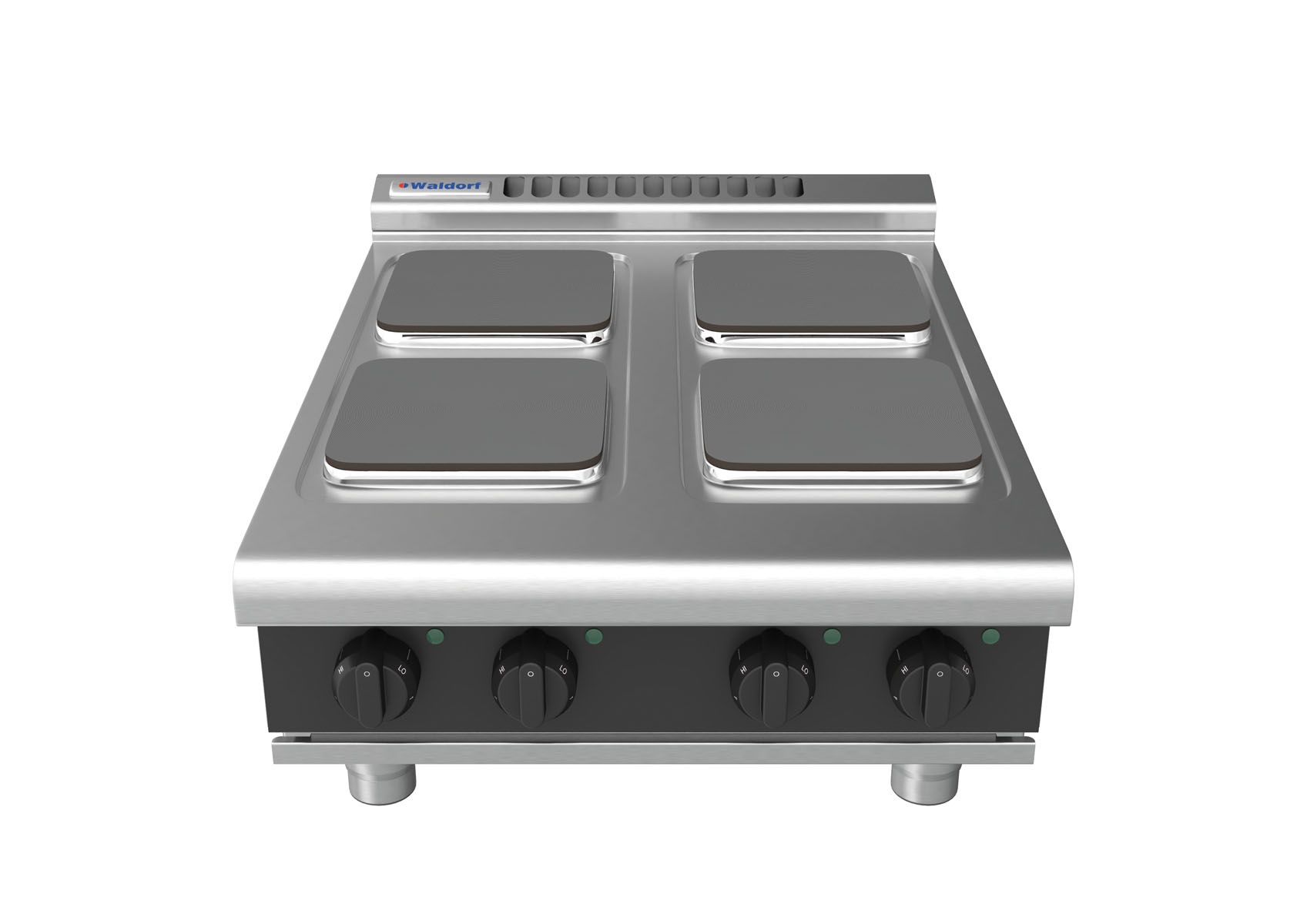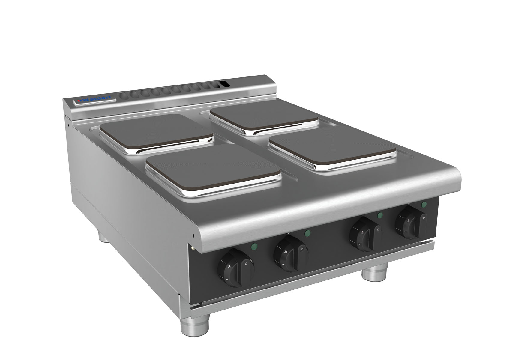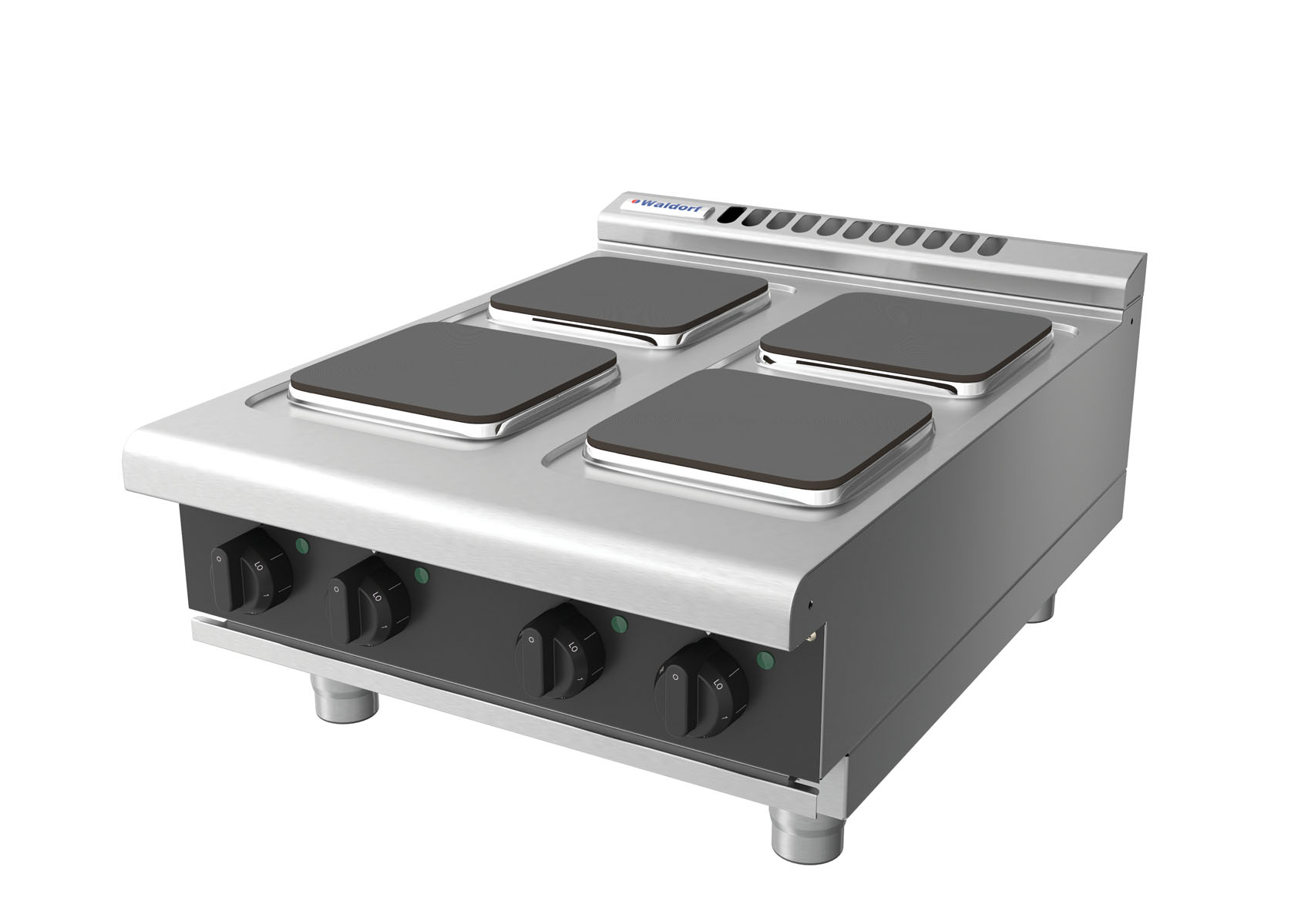 Waldorf BOLD 8400 Series 600mm 4 x 2.6kW Electric Benchtop Cooktop with Sealed Hobs and Low Height Splashback. Finished in Black. (22A)