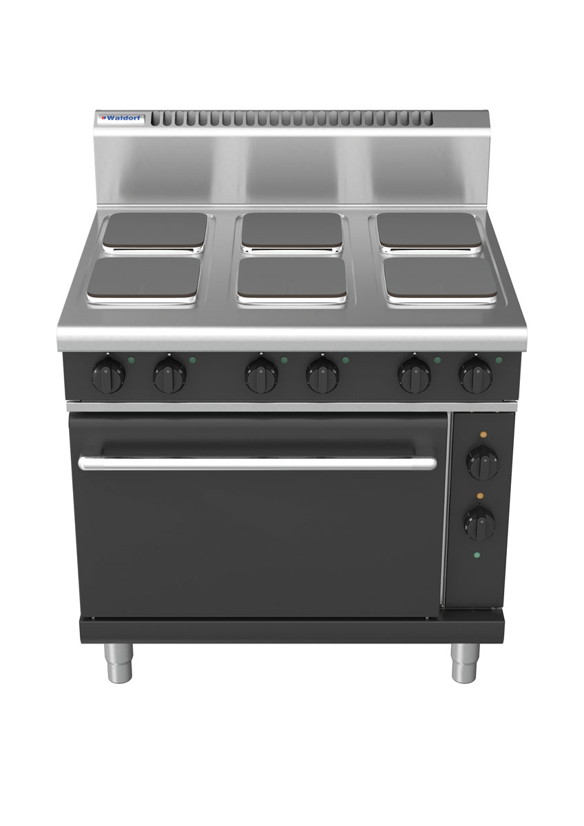 Waldorf BOLD 8610 Series 900mm 6 x 2.6kW Electric Cooktop on 2/1 GN Static Oven with Sealed Hobs. Finished in Black. (3P)
