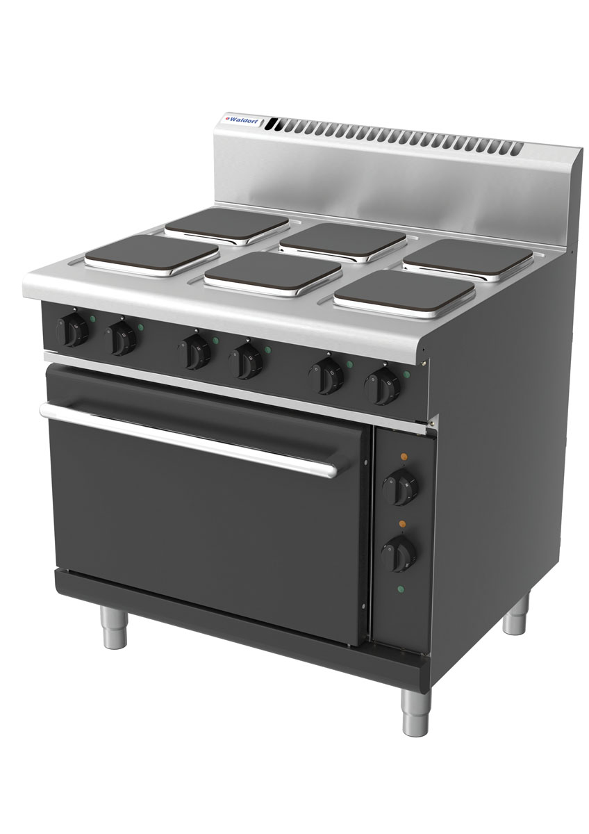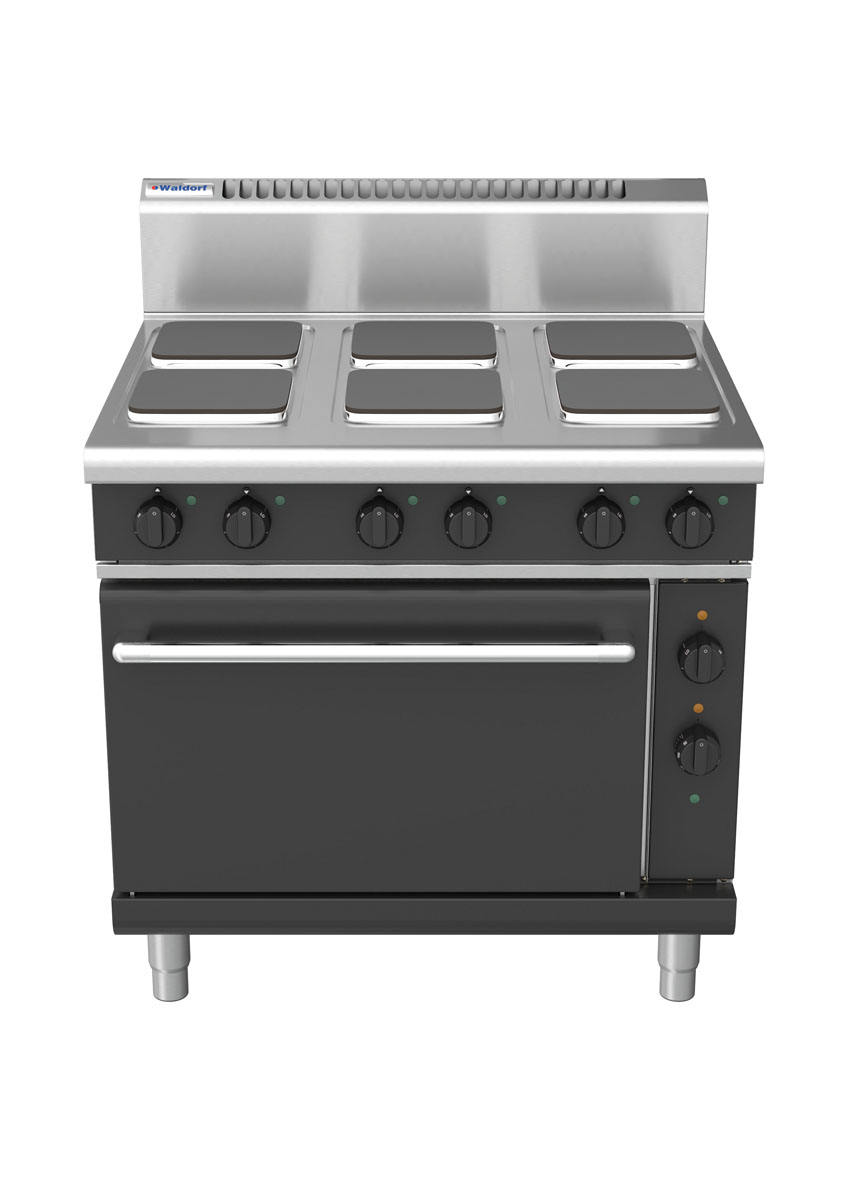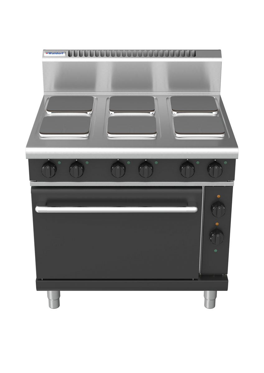 Waldorf BOLD 8610 Series 900mm 6 x 2.6kW Electric Cooktop on 2/1 GN Convection Oven with Sealed Hobs. Finished in Black. (3P)