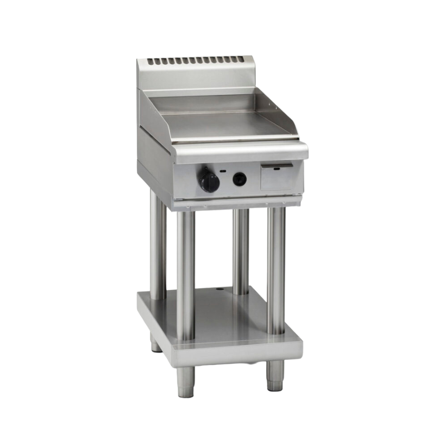 Waldorf 800 Series 450mm Modular Gas Heavy Duty Thermostatic Chrome Griddle on Leg Stand. (LPG Gas)