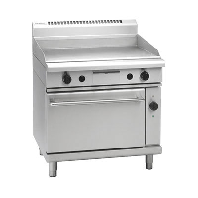 Waldorf 800 Series 900mm Modular Gas Heavy Duty Thermostatic Griddle on 2/1 GN Electric Static Oven Range. (LPG Gas)