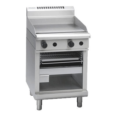 Waldorf 800 Series 600mm Gas Griddle Hotplate with Toasting Rack and Storage Shelf Under. (NAT Gas)