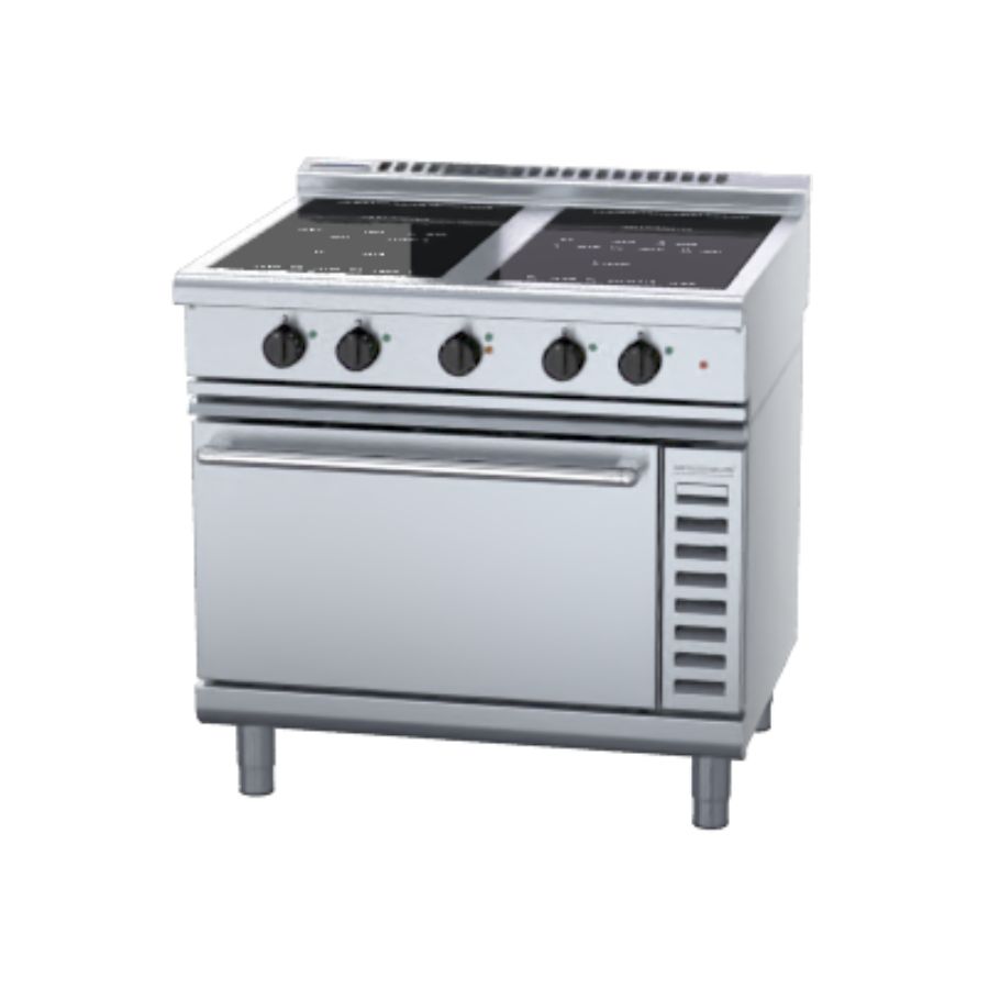 Waldorf 800 Series 900mm 4 x 5.0kW Round Zones Electric Induction Range Convection Oven – Low Back Version. (3P)