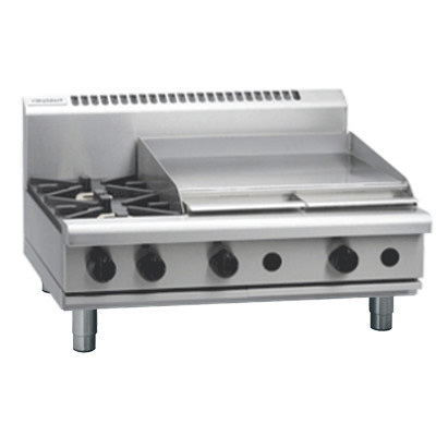 Waldorf 800 Series 900mm Modular Gas Bench Mounted Combination 2 Burner Cooktop with 600mm Griddle. (NAT Gas)