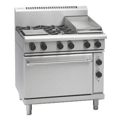 Waldorf 800 Series 900mm Modular Gas Range Combination 4 Burner Cooktop and 300mm Griddle on 2/1 GN Electric Static Oven. (LPG Gas)