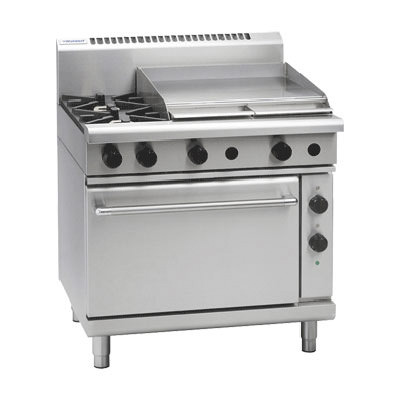 Waldorf 800 Series 900mm Modular Gas Range Combination 2 Burner Cooktop with 600mm Griddle on 2/1 GN Electric Static Oven. (LPG Gas)