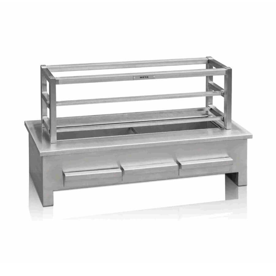 WETA Triple Temperature Zone Japanese Grill with Double Gantry. Finished in Stainless Steel.